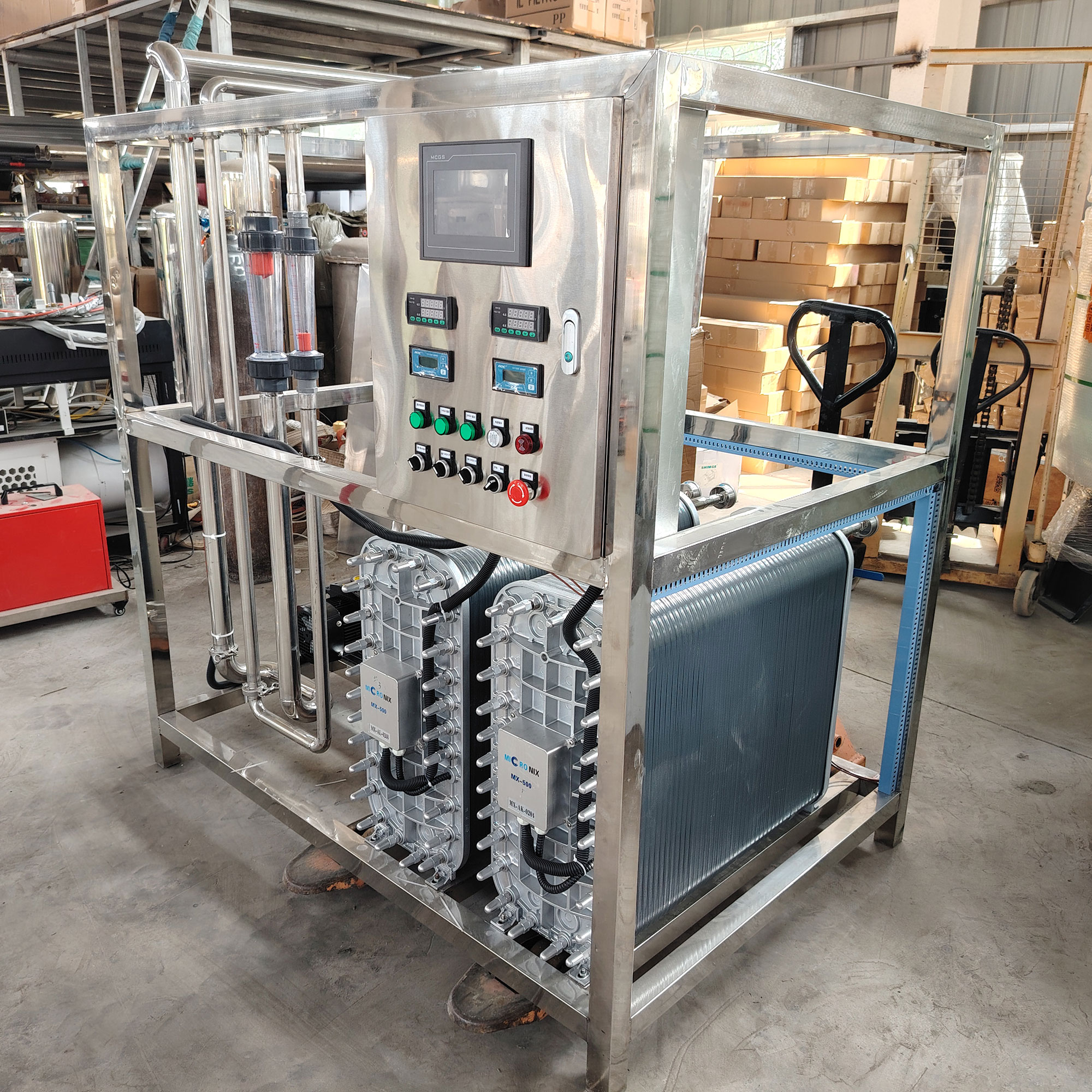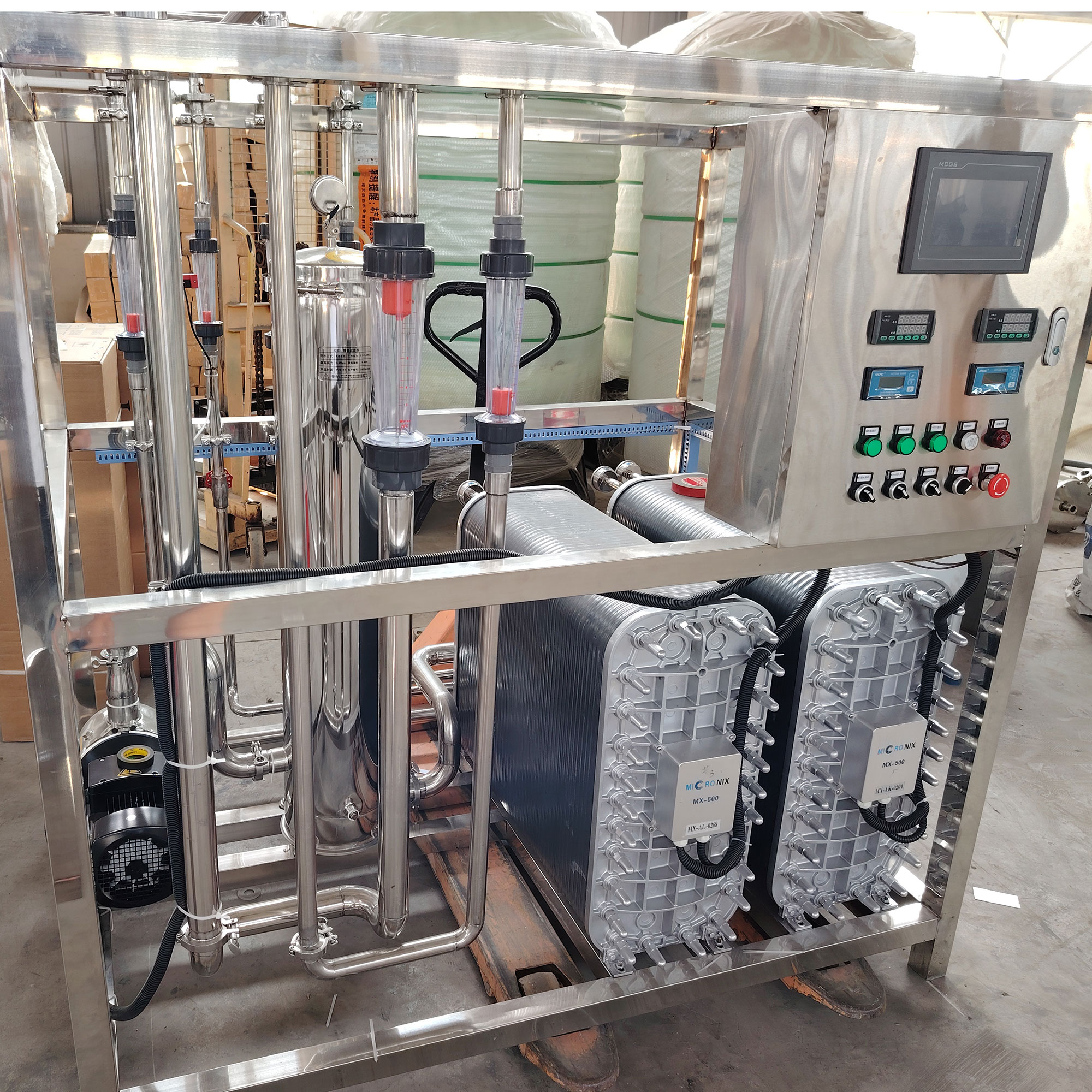 - 全不锈钢架构:机架、管路、罐体均采用SUS304/SUS316L不锈钢,耐腐蚀、易清洁、寿命长。